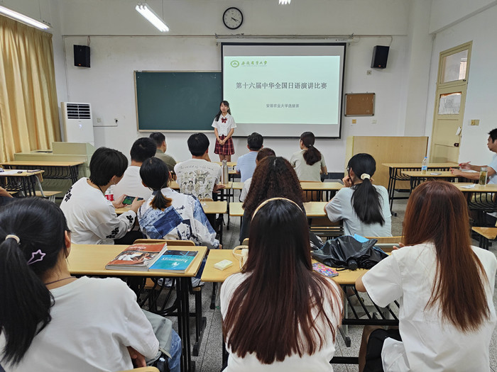 本网讯 9月24日外国语学院日语系举办了第十六届中华全国日语演讲比赛安徽农业大学选拔赛。中华全国日语演讲比赛由中国教育国际交流协会、日本经济新闻社和中日学术交流中心联合举办,该项赛事迄今已成功举办十五届,作为最有影响力的赛事之一,促进了中日两国间人文和青少年的交流。