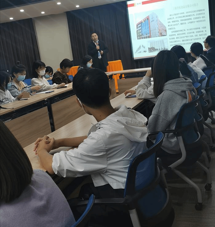 最后,到访师生和集团人力资源部的工作人员进行了座谈交流,陈明山先生对企业的发展历程、企业文化、荣誉资质、社会服务、校企合作等进行了介绍,他还向师生介绍了自己所从事的工作,并和大家分享了自己的工作经验和感悟。最后,姬惠惠副书记代表全体师生对青松集团的精心安排和接待表示真诚的感谢。