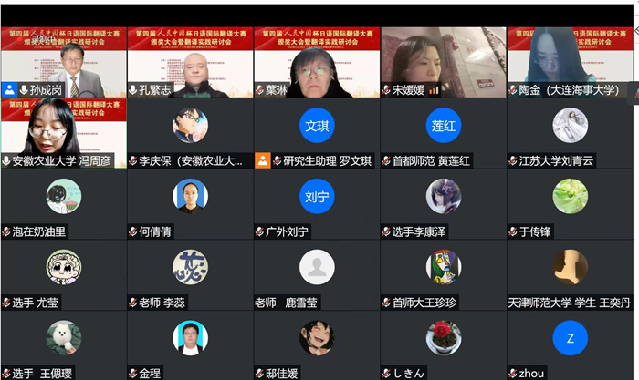 在此次大赛中,我院日语系学子凭借出色的语言运用能力和过硬的翻译功底脱颖而出,取得了优异成绩。在本科组日译汉比赛中,我院日语专业冯周彦同学荣获二等奖,陈振宇、刘馨怡、伍红文同学荣获三等奖;在本科组汉译日比赛中,周婧洁同学荣获二等奖,谢茹梦、曾睿同学荣获三等奖,创下了我校参赛以来的最好成绩。28日下午,我院参赛选手和指导老师线上参加了“第四届人民中国杯日语国际翻译大赛颁奖仪式暨翻译实践研讨会”,李庆保老师和冯周彦同学代表我校参加了晚上的研讨会本科组分论坛,冯周彦同学代表我校选手发言,交流了参赛感想。