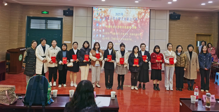 本网讯 11月24日晚,外国语学院在外语楼502多功能厅举办2021年安徽省大学生跨文化能力大赛校内选拔赛(英语组)决赛,院长孙志农、副院长王玉明、副院长许宗瑞及来自全校各学院的100多名同学现场观摩了比赛。经过激烈角逐,由2019级应用统计学吕俊雪、2019级法语张龙翔和2019级英语张倩倩组成的团队获得了第一名并荣获特等奖,另有5个团队获一等奖,12个团队获二等奖,18个团队获三等奖。