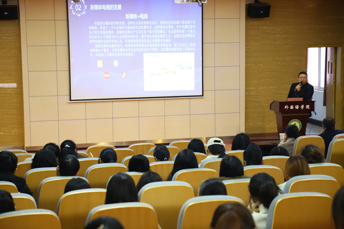 本网讯 近日,为了加强商务英语专业课程实践的育人成效,英语系邀请了安徽杰品科技发展有限公司和安徽保达国际货运代理有限公司的管理人员,走进19级商务英语专业《跨境电子商务》的课堂,围绕“新媒体运营”和“跨境电商物流”,为学生们带来了生动活泼、别开生面的两堂实践课。