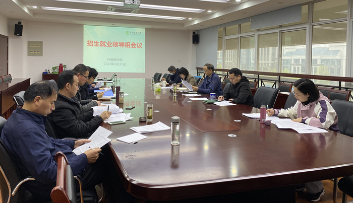 为深入推进2022年招生就业工作,3月31日下午,外国语学院2022年招生就业领导组会议在外语楼506会议室召开,学院领导孙志农、姬惠惠、王玉明、许宗瑞以及各系部主任、毕业班辅导员等参加了会议,党委副书记姬惠惠主持会议。