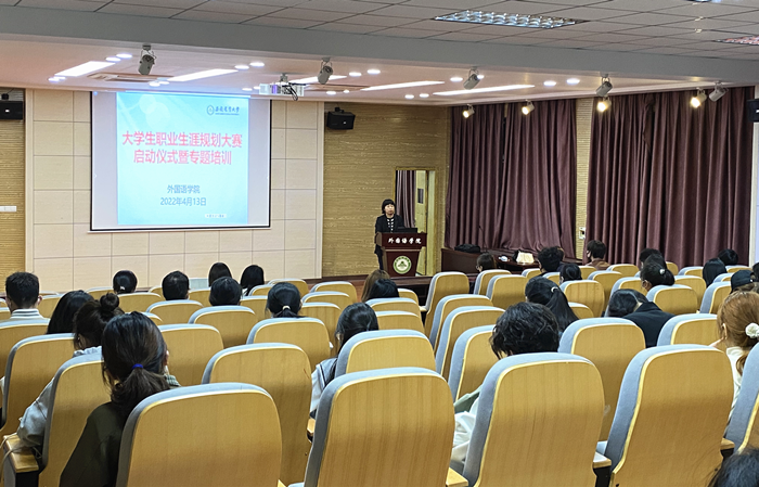 为进一步提高大学生的职业规划意识,培养大学生的社会责任感和创新精神,引导大学生树立正确的成才观、就业观,4月13日晚上7点,外国语学院在外语楼502报告厅举办大学生职业规划设计大赛启动仪式暨专题培训,学院党委副书记姬惠惠、招生就业联络员老师以及部分学生参加了活动。