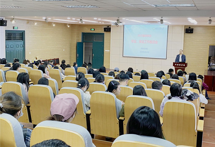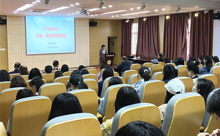 为贯彻落实学校就业工作推进会的相关要求,全力推动学院2022届毕业生按时毕业、充分就业。5月12日下午,外语学院在外语楼502报告厅召开了2022年本科生毕业就业工作推进会,学院领导、各系(部)主任、毕业班辅导员以及全体在校毕业班学生等参加了会议,会议由学院党委副书记姬惠惠主持。