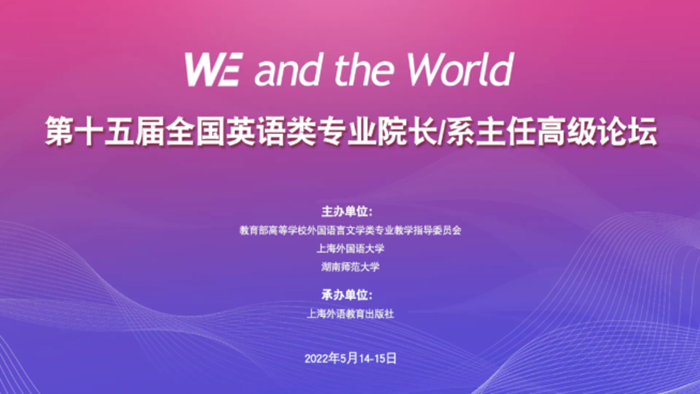 全国英语类专业院长/系主任高级论坛是教育部高等学校外国语言文学类 专业教学指导委员会与上海外国语大学共同发起、主办,上海外语教育出版社承 办的高规格英语类专业学术论坛,见证了英语类专业十多年来的蓬勃发展,成为引领我国英语类专业改革探索的一面旗帜,更是国内外语界高层次学者对话、高质量学术争鸣、高水平教学交流、高品质资源展示的重要平台。本届论坛以“WE and the World”为主题,将高举习近平新时代中国特色社会主义思想旗帜,服务国家发展战略,以引领我国外语学科融合、专业优化、课程提质、“三有”人才培养为宗旨,聚焦英语类专业如何发展专业本领、提升话语能力、弘扬共同价值,围绕学科内涵建设与专业优化、课程提质与培养模式创新、话语能力与国际传播力建设、价值引领与思政育人路径、信息化与教师教研能力提升等专题展开研讨。全国高校外语界专家、教师和学生共计10余万人收听收看了线上论坛的专家讲座。