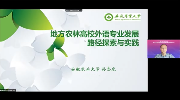 本网讯 近日,第十五届全国英语类专业院长/系主任高级论坛在线上举办,外国语学院组织教师积极参加,与全国外语界专家、老师一道,探讨新文科背景下英语专业内涵发展的建设路径。院长孙志农教授受大会邀请,在会上作了题为“地方农林高校外语专业发展路径探索与实践”的论坛报告。