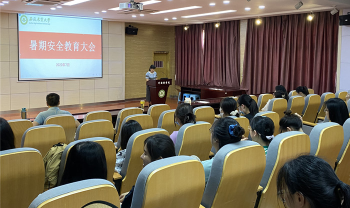 为进一步加强暑期留校学生安全教育,确保暑期校园安全稳定,7月1日下午,外国语学院在外语楼502报告厅召开暑期留校学生安全教育大会,学院全体留校学生、相关辅导员参会,会议由学院党委副书记姬惠惠主持。