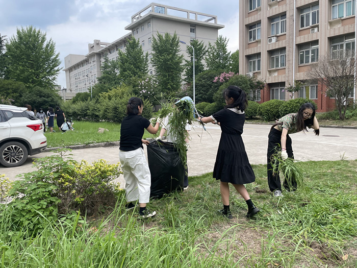 落实整治措施,全面清扫无死角。外国语学院严格落实整治工作措施,加强卫生管理,在外语楼内外清除不当墙面粘贴、卫生死角内堆积的杂物等,对发现的环境卫生问题及时处理,做到室内外干净整洁,全面清扫无死角。7月3日下午,学院组织师生对外语楼“三包”区域绿植草坪进行集中整治,清理杂草和垃圾,加强绿化整治,创建优美校园环境。