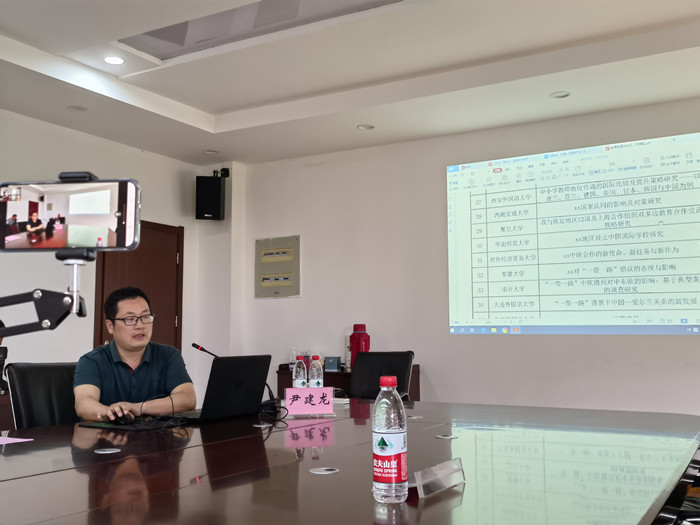 在沙龙首期活动阶段,安徽大学历史学院副院长、教育部国别和区域研究备案中心安徽大学欧盟研究中心主任、博士生导师尹建龙教授作了题为“外语人才从事国别区域研究的优势和挑战”的学术报告。通过丰富的案例,他介绍了国别区域研究的内涵和目标,重点阐释其跨学科特质及其与外语研究间的关联,并就外语教师研究空间如何拓展、如何走出“理论”困境、如何开展对策研究等问题,提出独特见解。他认为,农林高校外语人在农业援非、国外乡村振兴、发展中国家扶贫中的中国贡献等话题上,拥有明显的优势。尹教授的报告持续了两个多小时,讲解深入浅出、引用信手拈来、语言生动幽默,与会人员纷纷表示受益匪浅。