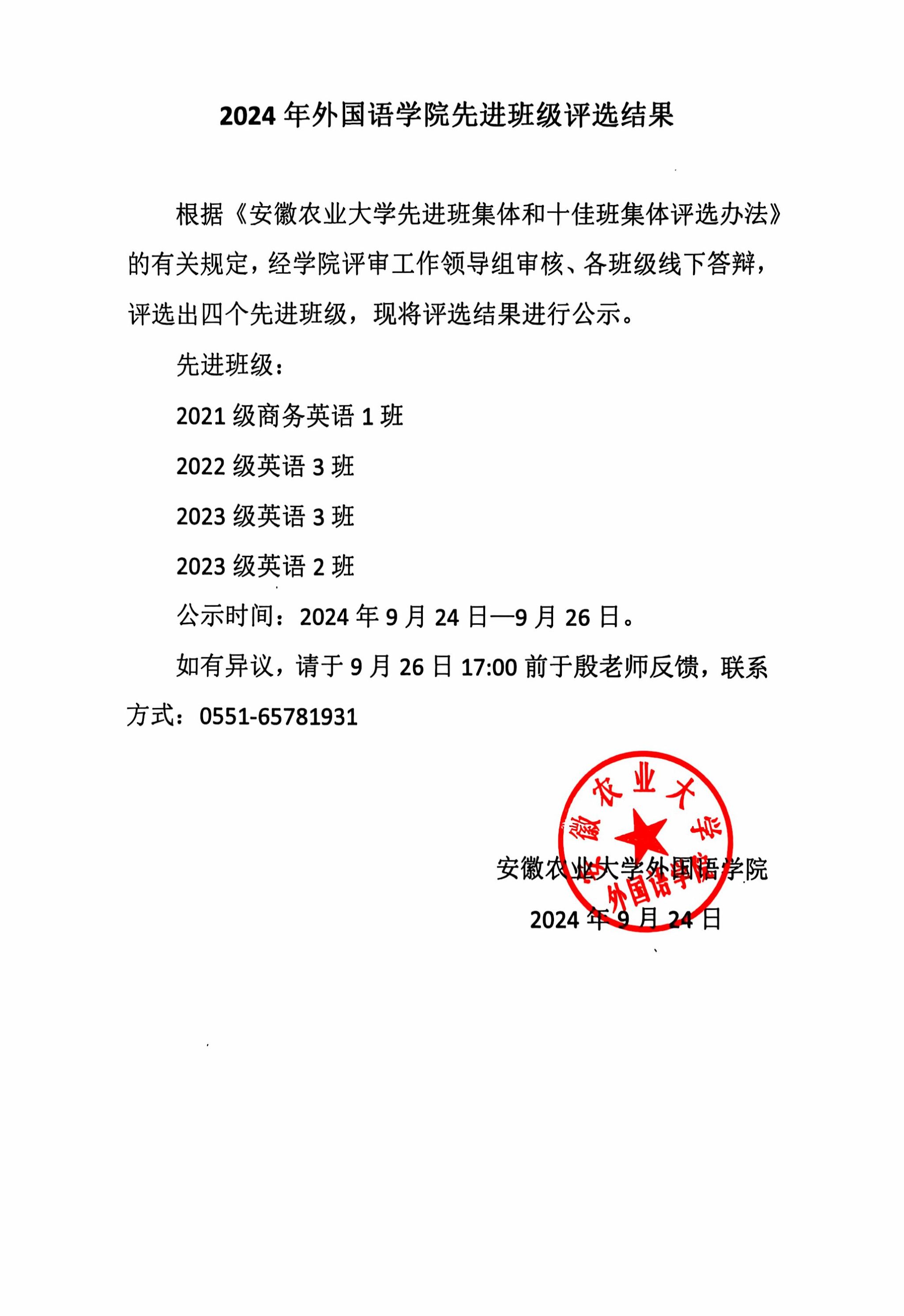 如有异议,请于9月26日17:00前于殷老师反馈,联系方式:0551-65781931