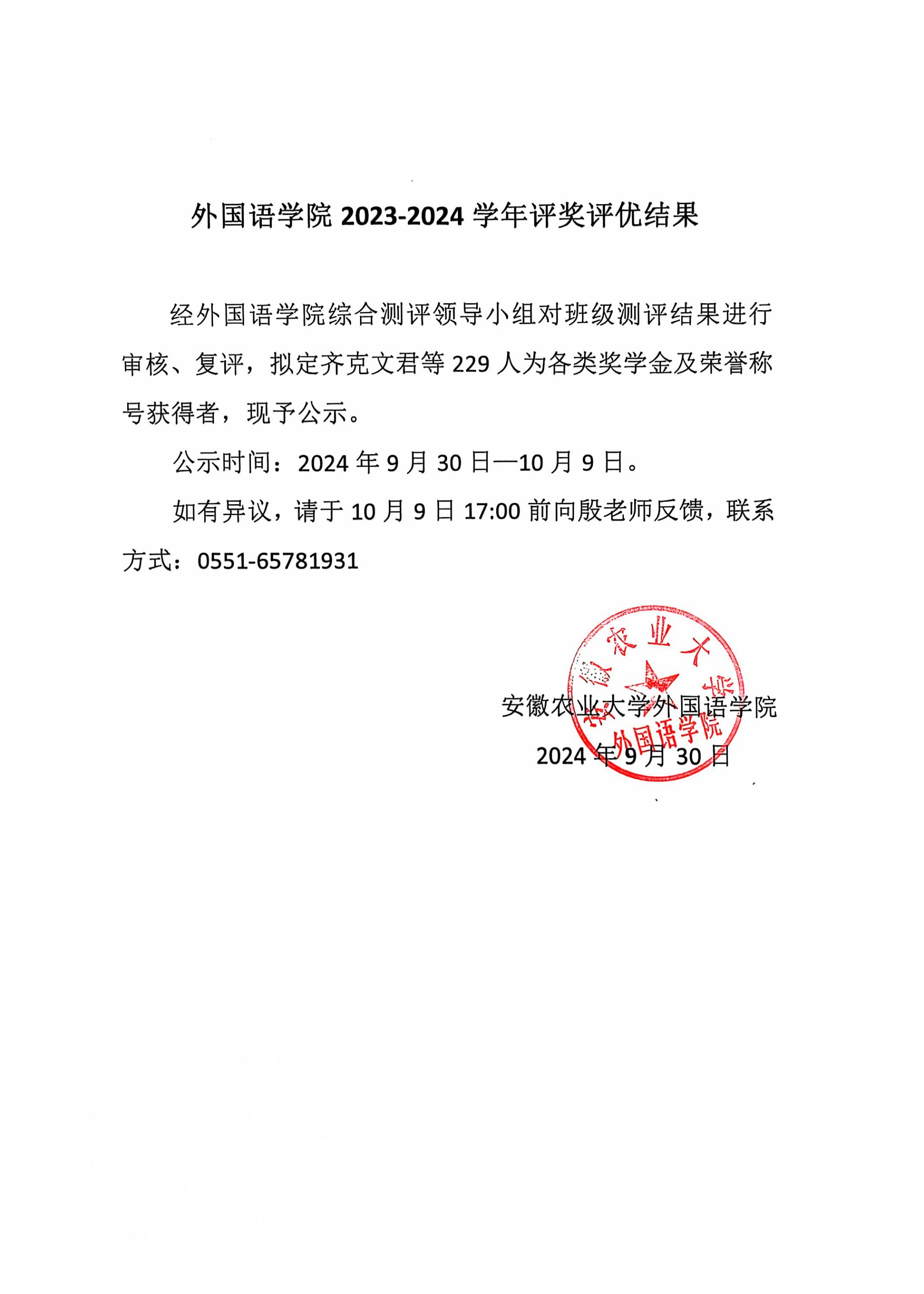 如有异议,请于10月9日17:00前向殷老师反馈,联系方式:0551-65781931