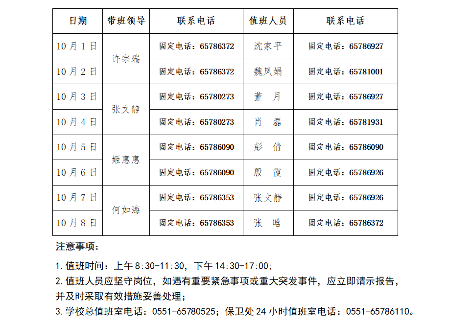 外国语学院2025年国庆中秋假期值班安排表