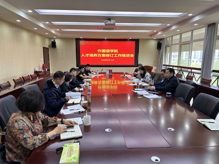 本网讯 4月12日下午,外国语学院在506会议室召开召开2024版人才培养方案修订工作推进会。学院领导何如海、姬惠惠、张文静,系(部)主任和副主任,教学管理人员等参加会议。会议由学院副院长许宗瑞主持。