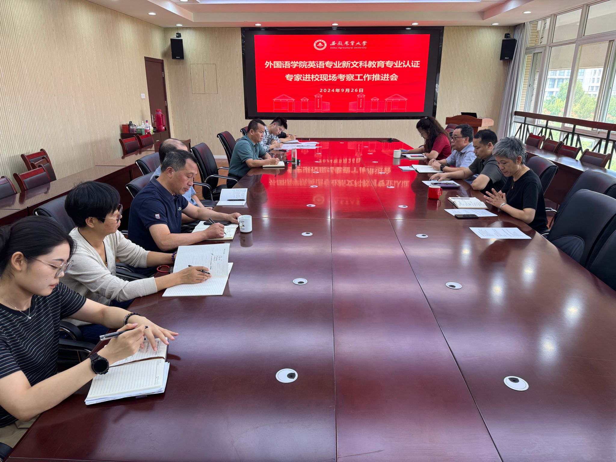 本网讯 9月26日上午,外国语学院在506会议室召开英语专业新文科教育专业认证专家进校考察工作推进会,学院领导班子、英语系主任及副主任、全体行政管理人员参会。会议由副院长许宗瑞主持。