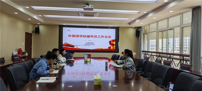 本网讯 3月29日上午,外国语学院召开辅导员工作会议,学院全体专职辅导员参会,会议由学院党委副书记姬惠惠主持。