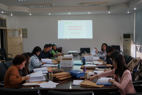 会议室开展了教案和试卷阅卷规范检查评比活动,副院长张剑韵、王玉明和学院教学督导组成员对参评教案和试卷进行了评审。