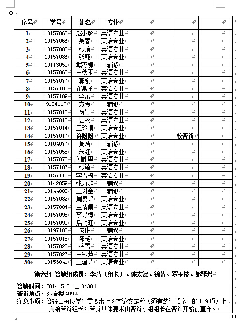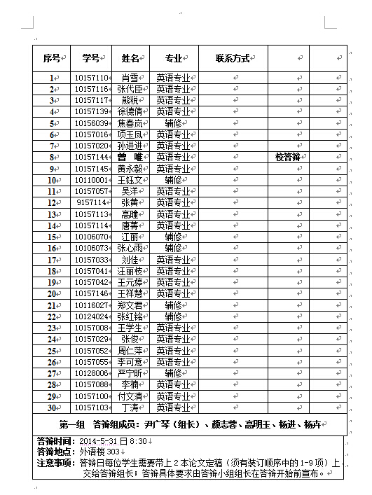 1. 答辩日每位学生需要带上2本论文定稿(须有装订顺序中的1-9项)上交给答辩组长;答辩具体要求由答辩小组组长在答辩开始前宣布。