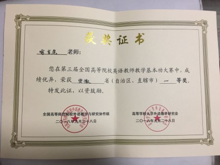 落下帷幕,我校外国语学院英语系喻言虎老师和大学英语教学部程凌云老师凭借稳定发挥和优异表现,双双获得了安徽省赛区一等奖,充分展现了我校英语教师精湛的业务水平和扎实的语言基本功。