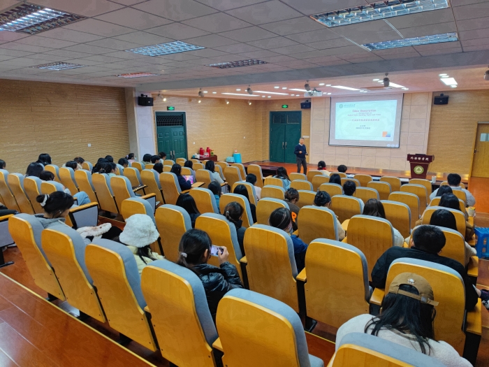 本网讯 11月29日晚,由英语系创新实践课程组承办的“新文科”建设暨创新实践系列讲座第十讲在外语楼502多功能报告厅顺利举行。本场讲座的主题为“观点的生成——从英语公共演讲的话题和标题说起”(Idea Generation: Perspectives on English Public Speaking Topics and Titles),由英语系王玉明教授主讲,来自英语与商务英语专业各年级近200名学生参加了此次讲座。