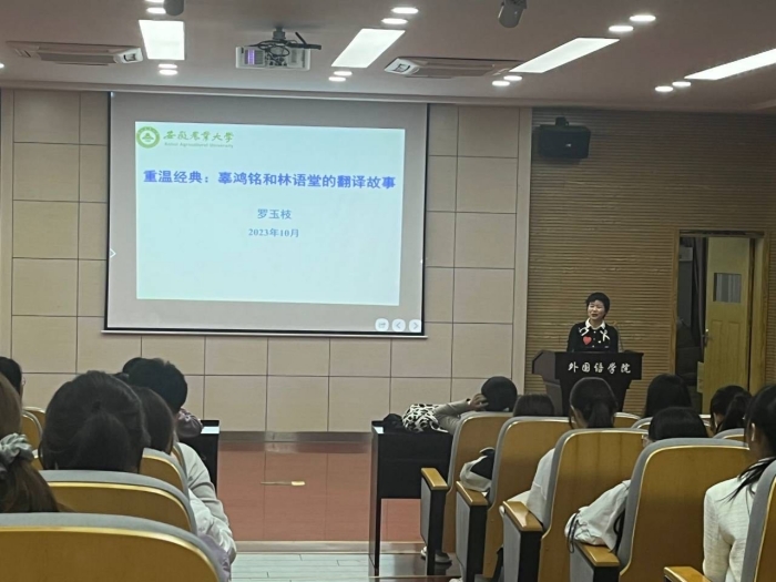 近日,由学院英语系创新实践课程组所承办的“新文科”建设系列创新讲座(第六讲)在外语楼502多功能报告厅顺利举行。本场讲座主题为“重温经典:辜鸿铭和林语堂的翻译故事”,由英语系罗玉枝副教授主讲,英语专业和商务英语专业的200多名学生聆听了讲座。