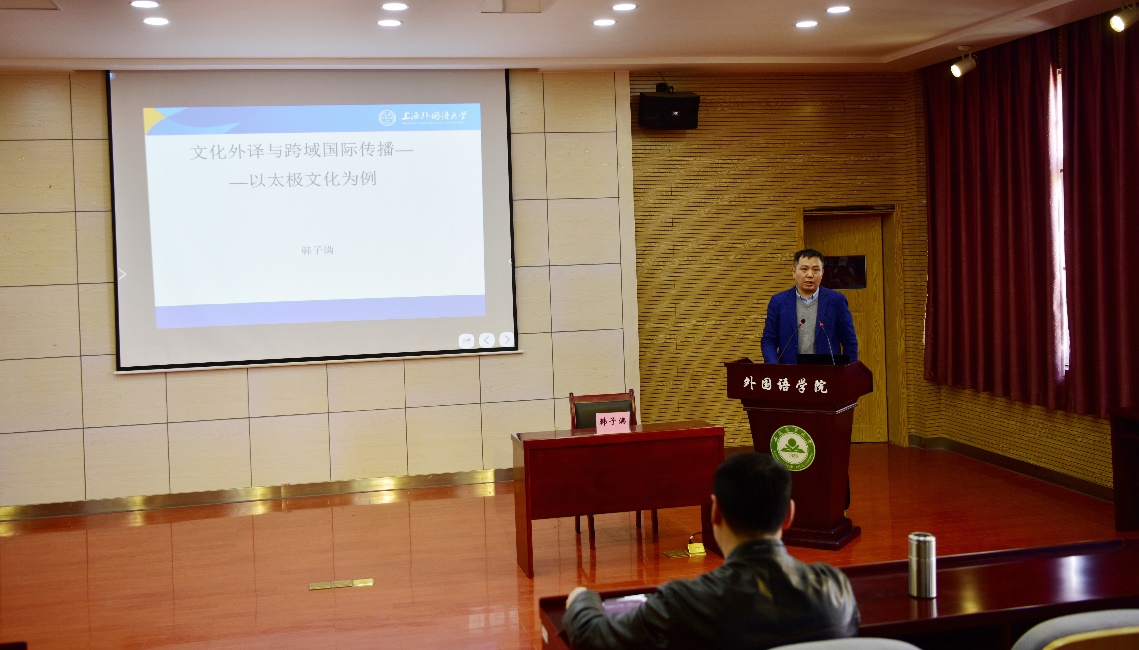 韩子满以“文化跨领域国际传播与文化外译——以太极文化为例”为题,介绍了太极文化在英美传播的情况,并指出太极文化在英美的传播领域主要是医疗卫生,与国内主要在体育和哲学领域的传播有显著不同,这种跨域传播现象应引起翻译界的高度重视,要打破翻译国际传播的刻板思维,在文化外译的全过程做出调整,以便更加有效地确保文化的走出去与走进去。讲座结束后,韩子满还与学院计划申报2024国家基金的教师进行了面对面、一对一的指导。