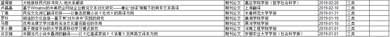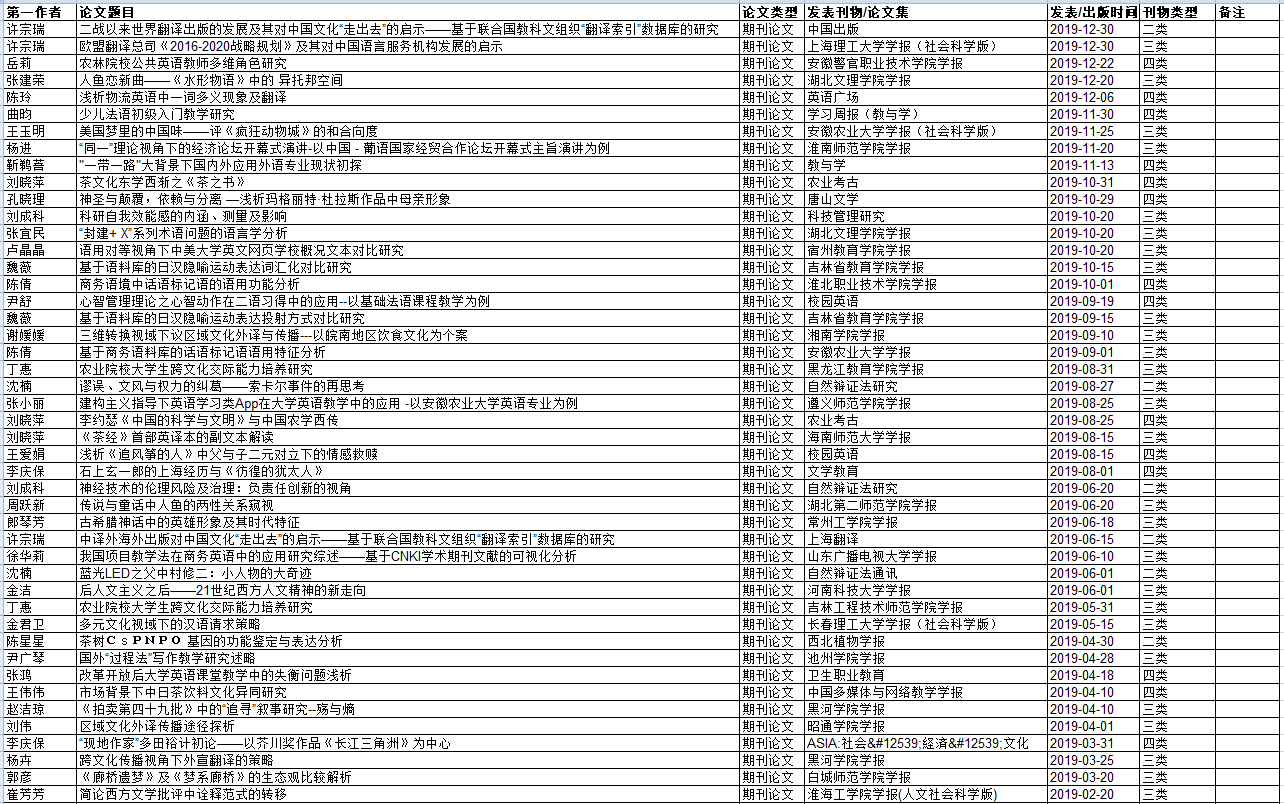 外国语学院2019年度发表论文成果信息一览表