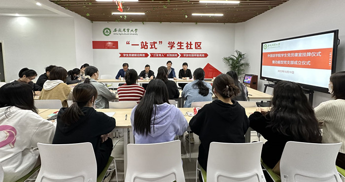 本网讯 “功能型党支部要用实际行动为人民师生”。10月19日下午,外国语学院在“一站式”学生社区开展学生党员寝室挂牌暨功能型党支部成立仪式。外国语学院党委书记方章东、组织部副部长黄庆华、学生处副处长周涛及功能型党支部全体党员参加会议。会议由院党委副书记姬惠惠主持。