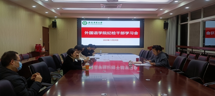 本网讯 11月29日下午,外国语学院于外语楼506会议室召开第四季度纪检干部学习会。学院纪委委员、党支部纪检委员参会,会议由院党委副书记、纪委书记、副院长姬惠惠主持。