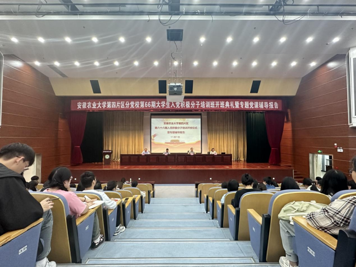 本网讯 为了加强对入党积极分子的教育和培养,提高大学生党员的发展质量,11月1日晚,第四片区党校第66期入党积极分子培训班开班典礼在图书馆第一报告厅举行。外国语学院党委书记何如海,经济管理学院党委副书记、纪委书记周涛,人文社会科学学院副院长单国雷出席,开班典礼由外国语学院党委副书记、纪委书记、副院长姬惠惠主持。