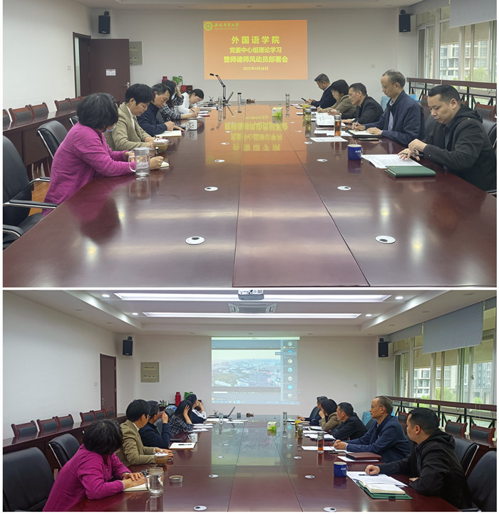 本网讯 “上好课,站稳课堂,需要教师下很多功夫和精力,这节课最突出的亮点是师生互动性强”。4月28日,外国语学院通过“线上+线下”的方式召开党委中心组理论学习暨师德师风专项工作会,学院领导、院党委委员、党支部书记和副书记、系(部、中心)正副主任、办公室人员参加会议。会议由院党委书记方章东主持。
