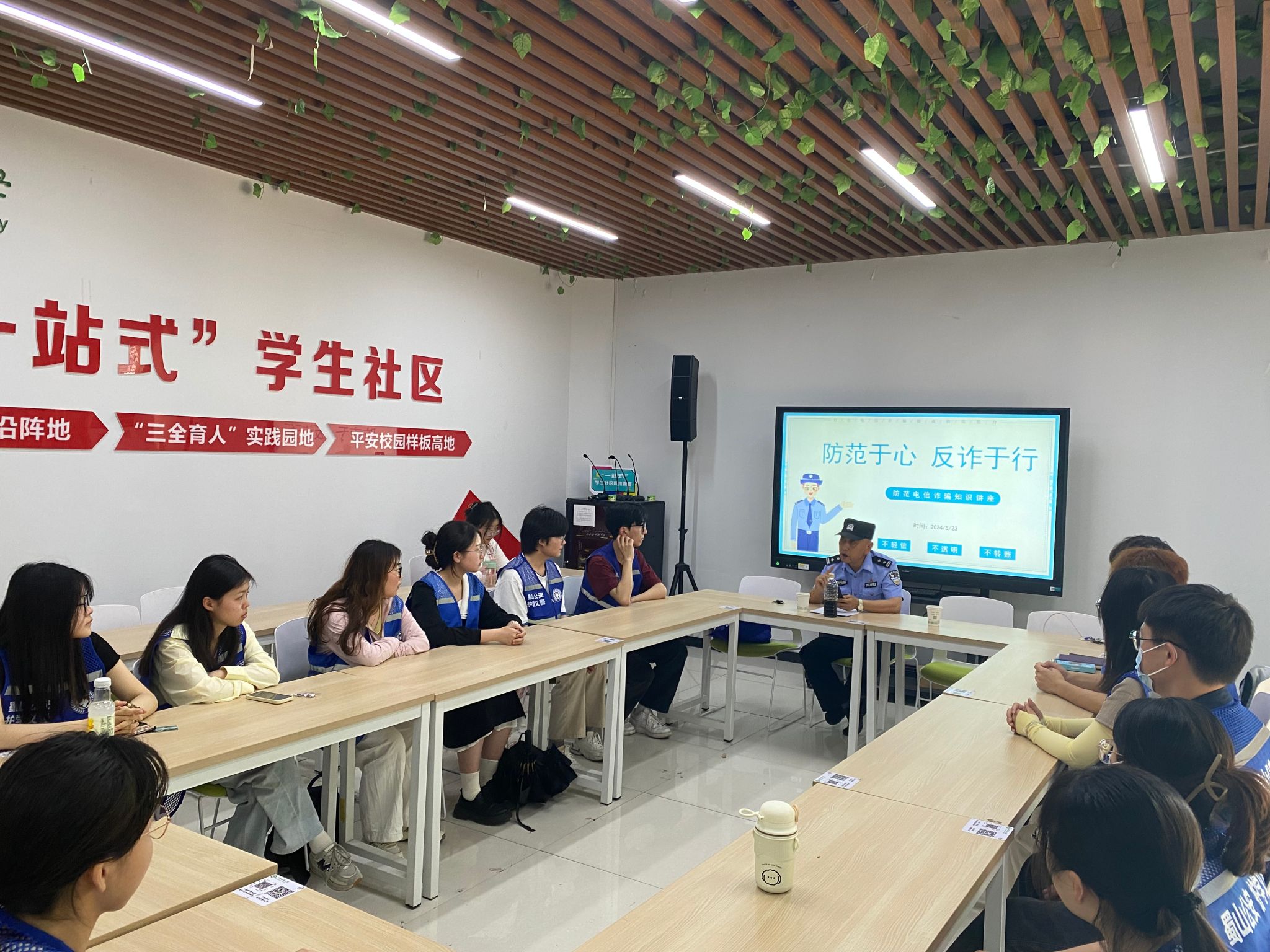 谨防诈骗,促安全。5月23日下午,学院开展了“防范于心 反诈于行——防范电信诈骗知识讲座”。琥珀派出所警官孙健民详细介绍了校园诈骗10大常见套路,并通具体案例让学生将“三不一多”原则牢记于心。活动最后,现场学生集体报名义警活动,学以致用,为社会安全稳定贡献青春力量。