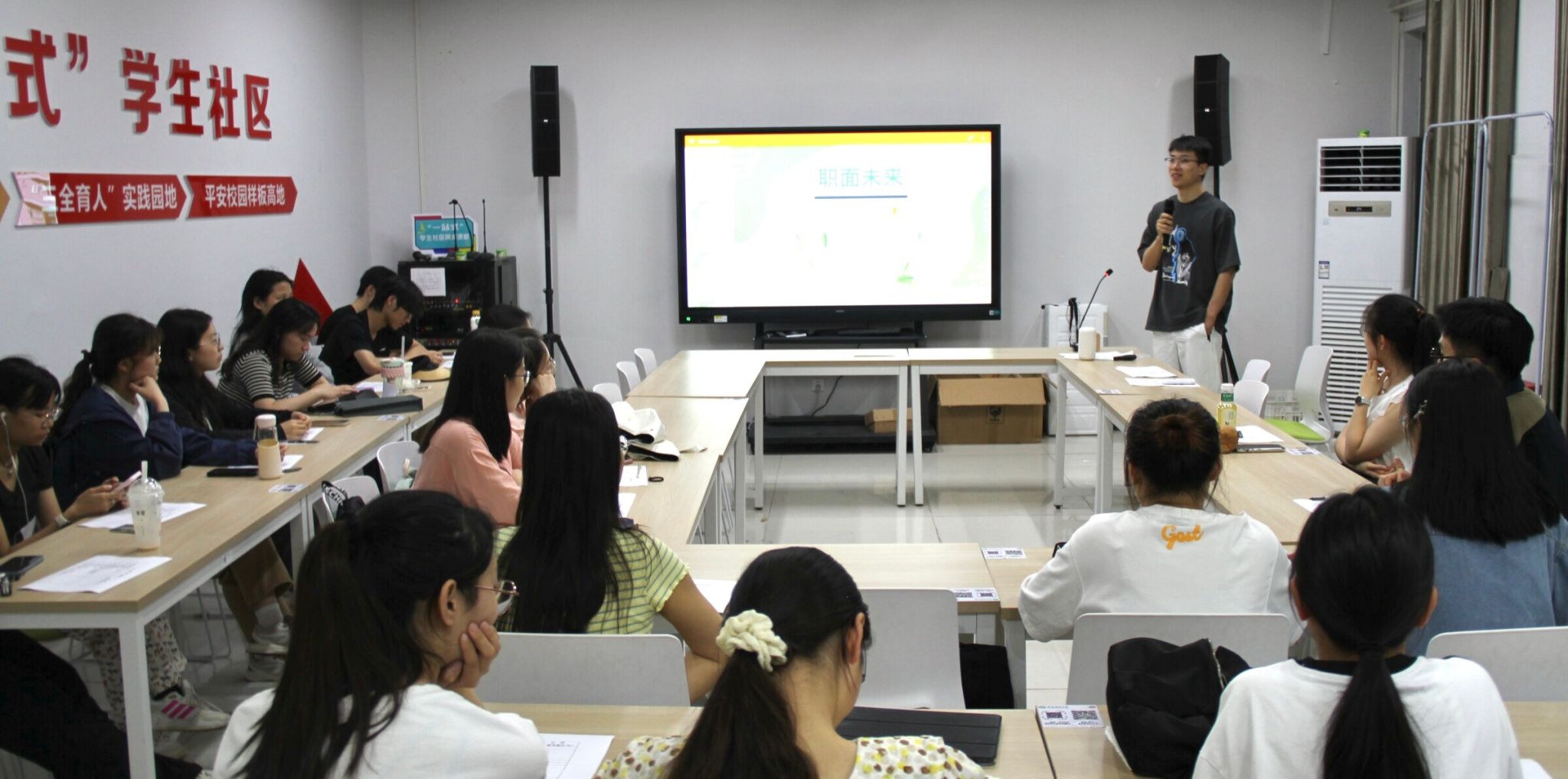 本网讯为全面落实立德树人根本任务,提升思想政治工作质量,让育人资源、力量下沉学生社区,促进大学生全面发展、健康成长。5月20日至5月24日外国语学院在“一站式”学生社区开展“青春对话 启智润心”系列活动。