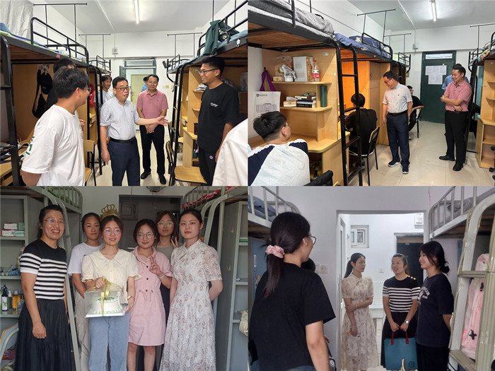 与新生细心总结分享“入校后注意事项”。报到当天下午学院领导带领辅导员走访慰问新生,面对面亲切交谈,并与当天生日同学一起庆生。晚上新生辅导员召开了第一次班会,与新生一起度过在安农的第一个夜晚。