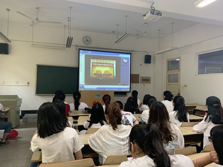 观影学习结束后,团支部两位预备党员趁热打铁,用简短的演讲《不忘来时路,不枉肩头担》给出了她们心中的“新时代”与“新决心”,并带领大家录制合唱《我和我的祖国》。