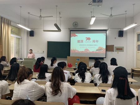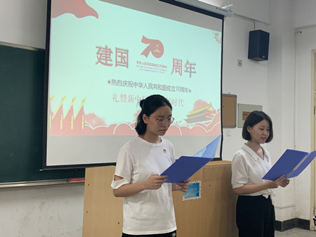 本网讯 新中国成立70周年之际,为激励和引导青年团员弘扬爱国奋斗精神,积极投身中国特色社会主义伟大实践、青春奋进新时代,外国语学院2017级英语3班团支部于9月29日举办以“礼赞新中国,建功新时代”为主题的团日活动。