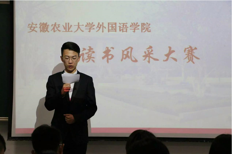 3月16日晚,外国语学院读书风采大赛初赛在外院楼213教室拉开帷幕。本次比赛由安徽农业大学外国语学院素拓部承办,比赛邀请了安徽农业大学外国语副主席封雪婷、新闻传媒中心主任陈文君、文艺部部长汪冰、动科院素拓部部长郭旭、林学院素拓部部长周婧涵、农学院素拓部部长李政、工学院素拓部部长赵芮晗出席评委。来自不同专业、班级的几只参赛队伍各展才能,共同为观众们献上了一场激情饱满的阅读分享盛宴。