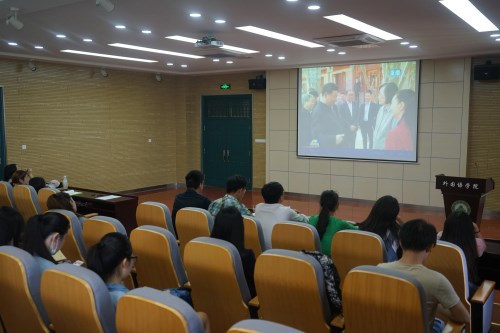学习座谈习近平总书记考察北京大学重要讲话精神。学院组织学生骨干在外语楼502多功能厅集中观看了习近平总书记在北京大学考察时的视频。通过学习交流,大家一致认为,习近平总书记的讲话精神不仅是对青年大学生的鼓励,更是一种鞭策,在今后的学习和工作中,会牢记并努力践行习总书记爱国、励志、求真、力行的殷切希望。2015级英语专业的封雪婷同学说到,“习近平总书记的谆谆教诲,令我倍感鼓舞。让我强烈感到,国家的事、民族的事,就是我们青年的事。”