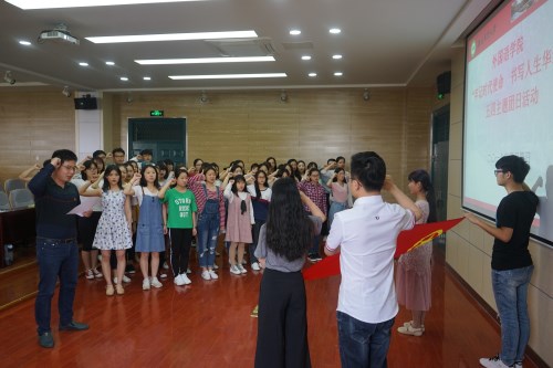 重温入团誓词,传承“五四”精神。为不断增强青年团员的时代意识和思想觉悟,学院抓住“五四”时间节点,组织团干部和学生骨干重温入团誓词。大家面对团旗,高举右手,紧握右拳,在学院团学工作负责人的带领下,郑重地进行宣誓。宣誓仪式后,大家纷纷表示,会牢记青春使命,继承和发扬共青团员的优良传统,努力学习,争当模范。