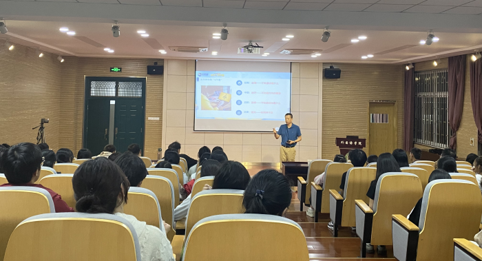 姬惠惠介绍了学院校企合作的主要情况以及本次活动的背景和目的,她指出,积极开拓校外资源,开展符合学生实际需要的职业生涯发展教育,是为了帮助学生拓宽职业视野、提高就业竞争力,希望同学们珍惜和名企HR交流的宝贵机会,通过本次活动能有所思考、有所收获。杨明分享了新航道国际教育集团的企业文化、行业发展及以及多个职业生涯的真实故事,并就职业规划、职业选择、就业形势等话题和现场的同学们进行了交流。他鼓励学生们聚焦学业规划,努力学习,以梦为马,不负韶华。