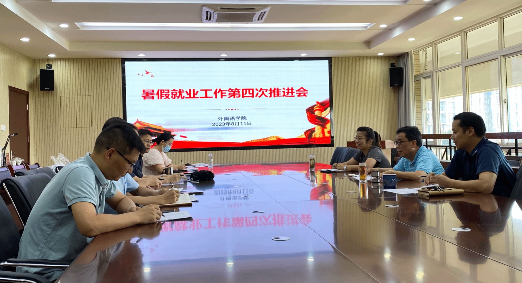8月11日下午,外国语学院在外语楼506会议室召开暑假就业工作第四次推进会,院党委书记何如海、副院长许宗瑞、各系(部)主任、2023届毕业生辅导员等参加会议,会议由党委副书记姬惠惠主持。