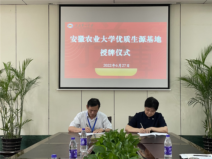 仪式上,方章东书记代表学院和两所新建优质生源基地中学签订了《安徽农业大学优质生源基地共建协议书》,并举行了“安徽农业大学优质生源基地”挂牌仪式。(张文静 通讯员:葛德智)