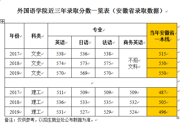 外国语学院近三年录取分数一览表(安徽省录取数据)