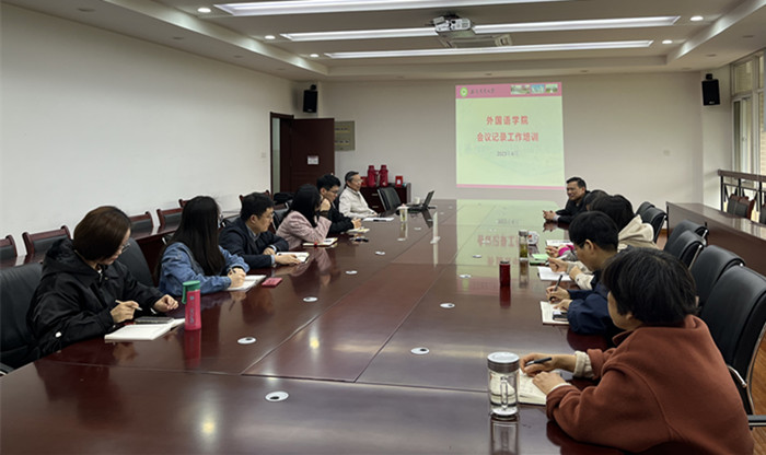 本网讯 为深入学习贯彻习近平新时代中国特色社会主义思想,提高外国语学院教职工专业素质和技能,2023年4月24日下午,外国语学院会议记录工作培训在外语楼506会议室举行,学院党委副书记姬惠惠、全体党政办公室工作人员、各系(部)会议记录员参加培训,培训由学院党委书记方章东主持。