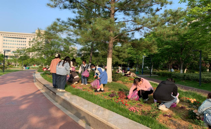 在学院党委副书记、纪委书记、副院长姬惠惠的带领下,外国语学院学生功能性党支部的同学们在负责的公寓文明创建区开展了垃圾清扫和花坛维护行动。“虽然顶着太阳弯腰劳作有些辛苦,但看到焕然一新的校园环境,一切的努力都是值得的。”功能性党支部的学生党员吴爽表示。