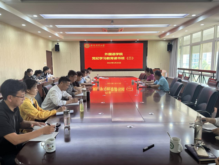 本网讯 5月20日下午,外国语学院举办党纪学习教育第二期专题读书班,学院党委书记、副书记、党支部书记及委员、管理人员参加了读书班。读书班由学院党委书记何如海主持。
