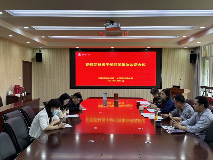 本网讯 为进一步筑牢廉洁自律防线,督促新任科级干部担当作为,4月15日下午,外国语学院举行新提任科级干部任前集中廉政谈话。学院党委副书记、纪委书记姬惠惠,副院长许宗瑞、张文静出席,3名新任职科级干部参加了谈话会。会议由学院党委书记何如海主持。